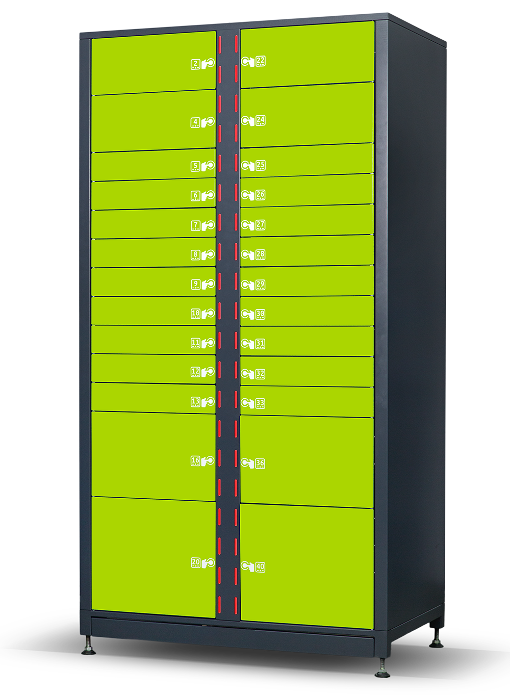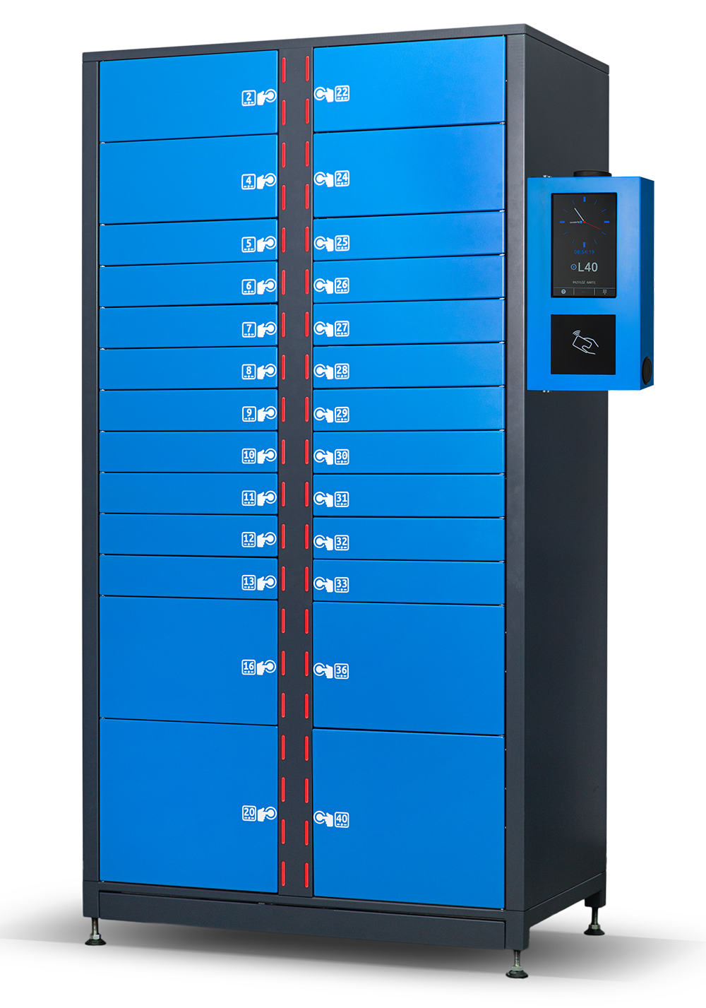 L40ME: Device installed with internal power (for charging items inside the locker)